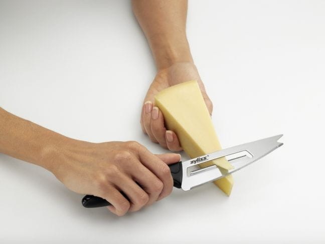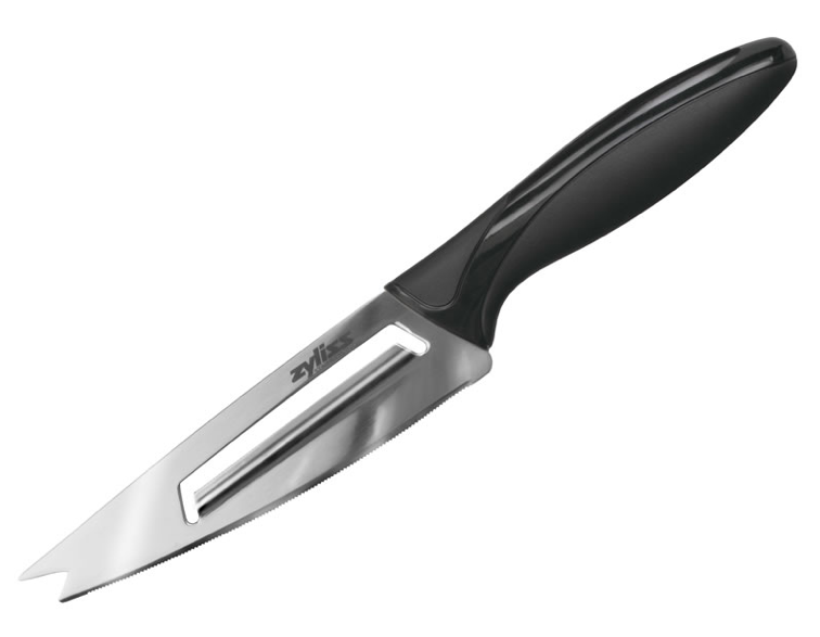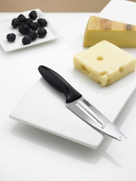 Wyposażony w specjalny szpic ułatwiający nabijanie i serwowanie kawałków sera.
