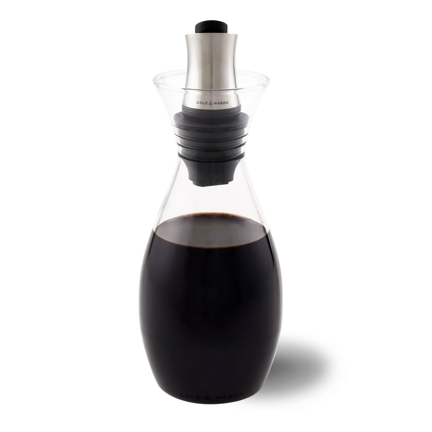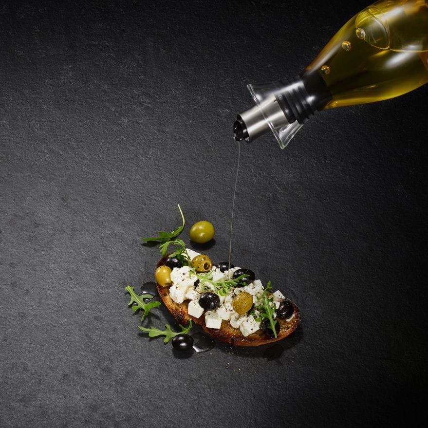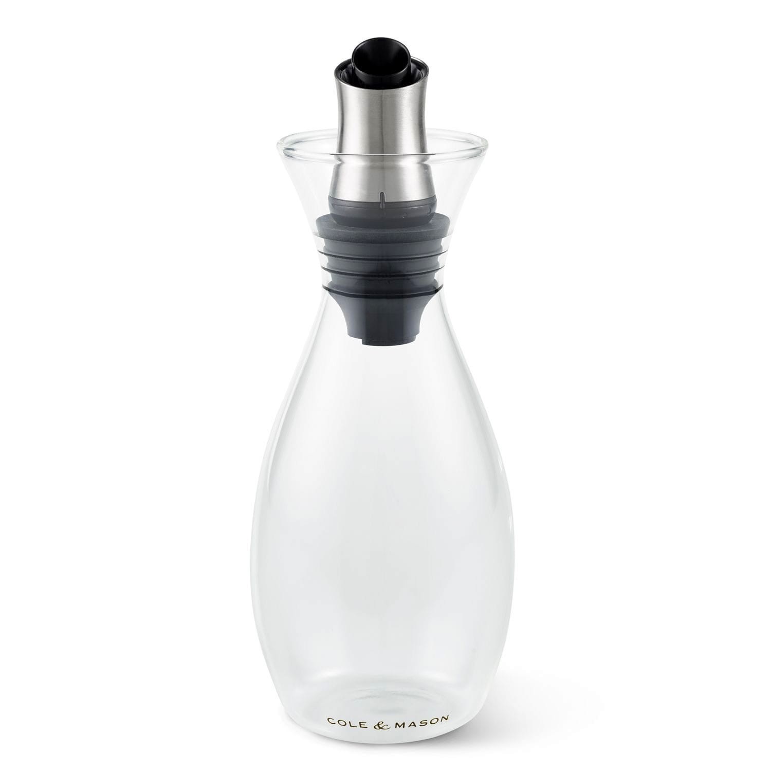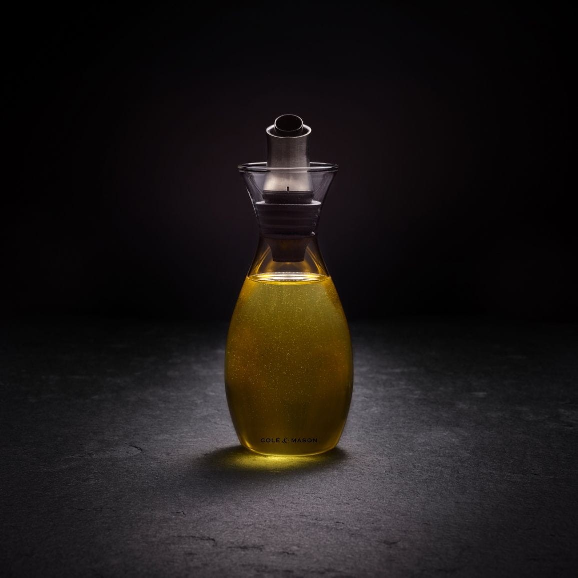 Butelka z wylewką FlowControl angielskiej marki Cole nad Mason pozwala wygodnie polać potrawę olejem lub sosem winegret bez uronienia kropli. Forma wylewki gwarantuje, że płyn nie będzie nam ściekał po butelce, krople wracają do butelki (drip return system). Wylewka posiada trzy stopnie regulacji, aby ułatwić właściwą aplikację olejów na potrawę lub naczynie. Kształt szklanej butelki oraz stalowe wykończenie wylewki sprawiają, że dozer prezentuję się elegancko zarówno w kuchni jak i na stole w jadalni.