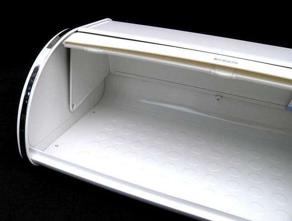 Wnętrze pojemnika pokryte blachą w kształcie bąbli, umożliwiającą "oddychanie" chleba.