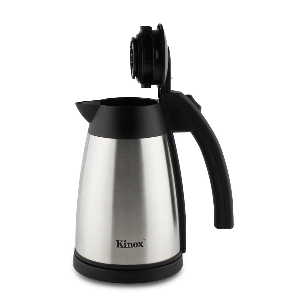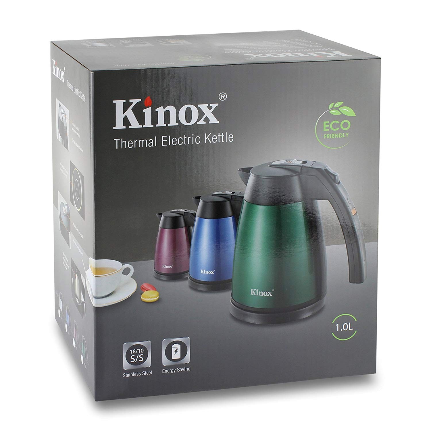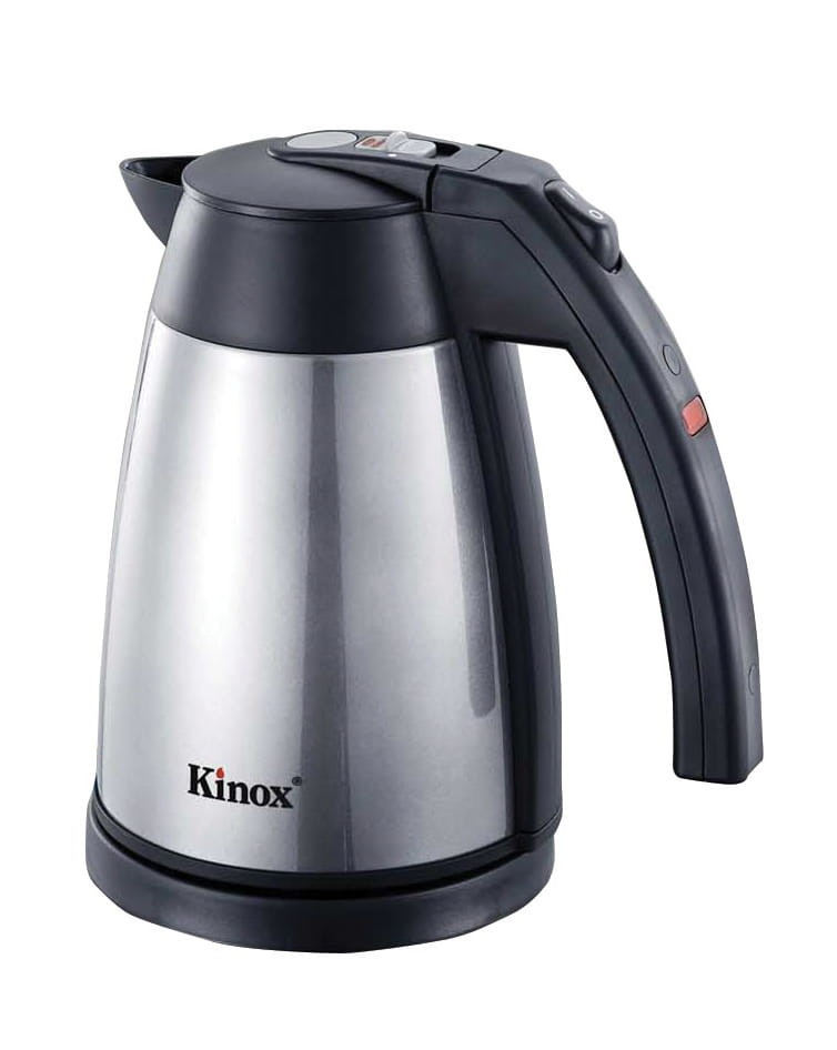 Innowacyjna budowa czajników Kinox, oparta jest na grubych ściankach ze stali nierdzewnej oraz szczelnej pokrywie, zabezpieczonej specjalnym przełącznikiem, który gwarantuje, że woda nie wyleje się nawet z przewróconego czajnika. Dzięki takim rozwiązaniom Kinox służyć może również jako dzbanek oraz termos. Zagotowana woda pozostaje w czajniku ciepła do 4 godzin. Taka konstrukcja czajnika zapewnia jego energooszczędność i wodooszczędność. Czajniki Kinox są również bardzo szybkie, zagotowanie w nich wody zajmuje mniej niż 5 min. Posiadają również wszystkie niezbędne zalety takie jak: pokrywę otwieraną za pomocą guzika, włącznik, który wyłącza się automatycznie po zagotowaniu się wody, wewnętrzną miarkę określającą maksimum gotowanej wody, a także bazę, na której czajnik można ustawić w dowolnym kierunku oraz niezbędne zabezpieczenia przed przegrzaniem urządzenia lub próbą włączenia pustego czajnika.