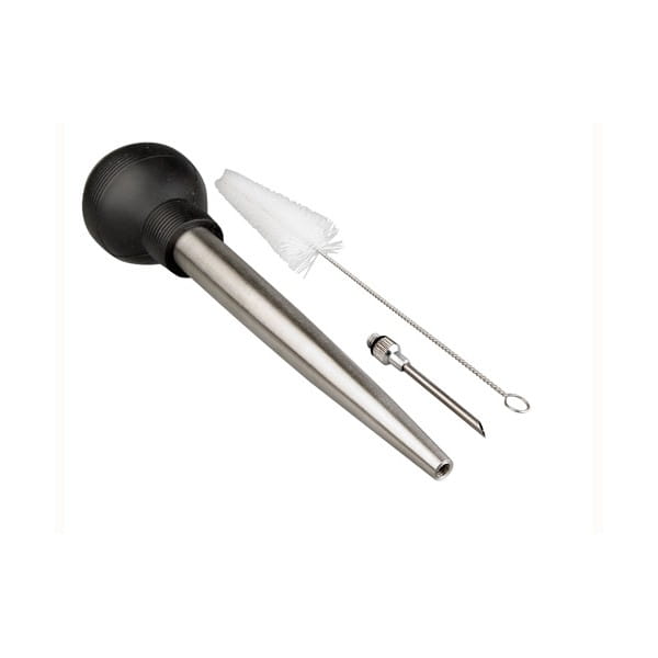 Pipeta do sosu pozwala polać pieczeń sosem w sposób kontrolowany i wygodny. Dodatkowo można wstrzyknąć sos do mięsa podczas gotowania. Dzięki temu urządzeniu możemy łatwo nawilżyć pieczeń, lub polać ją sosem bezpośrednio w piekarniku podczas pieczenia, ale również bez brudzenia talerza, stołu, kuchni.