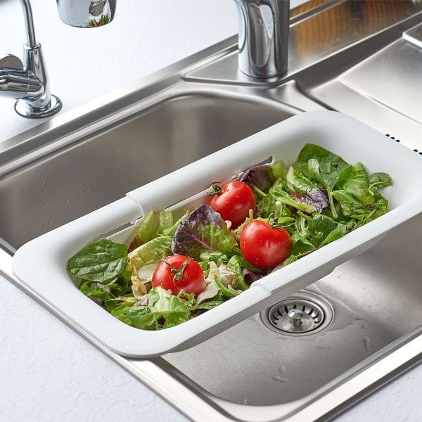 Rozsuwane sitko do zlewu z tworzywa sztucznego ma regulowaną wielkość i dlatego pasuje do każdego zlewu. Idealny do warzyw lub owoców, tworzy dodatkową przestrzeń w kuchni. Praktyczna pomoc kuchenna dla każdego!