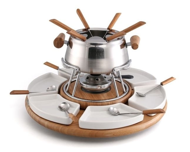 Zapakowany w eleganckie firmowe pudełko prezentowe. Idealny na prezent. Fondue Alba.