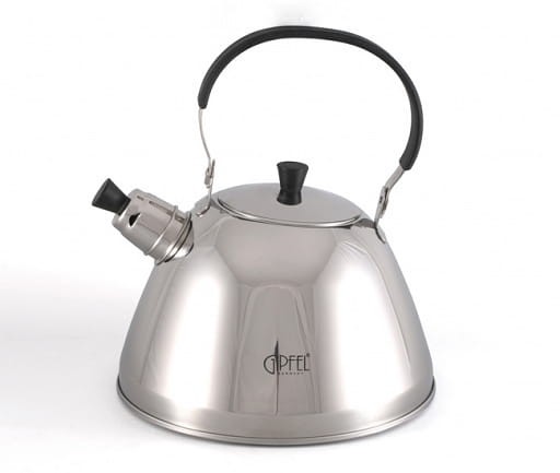 Odporny do 150 stopni Celsjusza, wyposażony w bezpieczny chłodny uchwyt, praktyczną pokrywkę ułatwiającą nalewanie wody i czyszczenie czajnika i gwizdek sygnalizujący zagotowanie wody o niskim przyjemnym dźwięku.