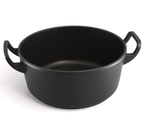 Garnek wykonany z aluminium pokrytego antyadhezyjną powłoką "DURIT Protect Plus" - zapobiegającą przywieraniu.