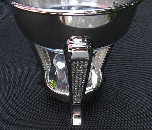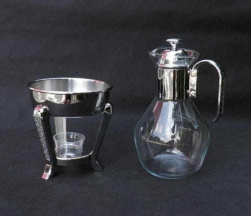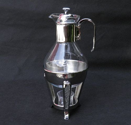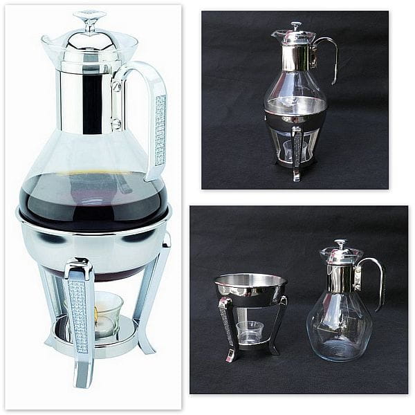 Praktyczny i funkcjonalny - dzbanek żaroodporny na stelażu o wysokim połysku. Doskonały do podania herbaty na stół, stawiając je na stelażu z zapaloną świecą do podgrzewania. Jest ona umieszczona pod dnem naczynia. Dzięki nim napój przez długi czas będzie ciepły i smaczny. Nikt nie musi biegać co chwilę aby gotować wodę.