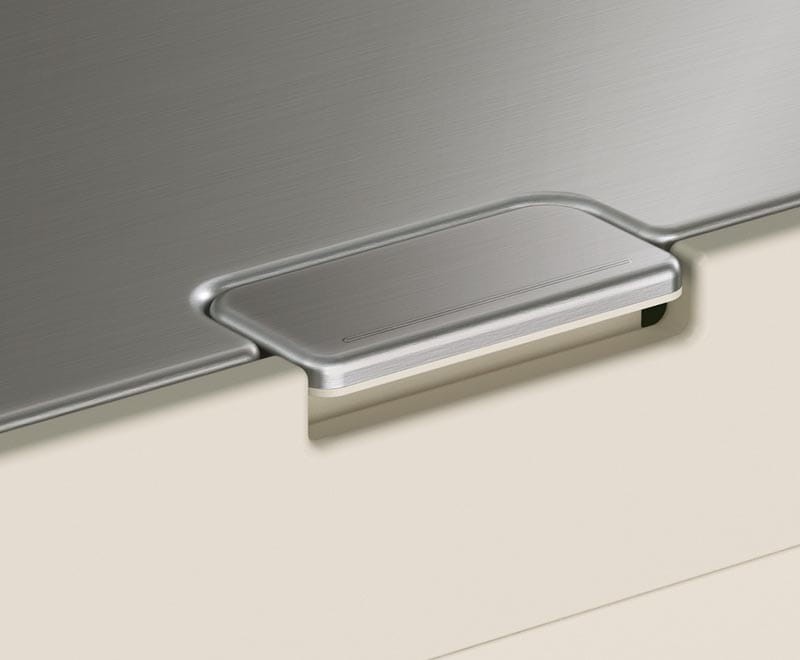 - pokrywa wykończona stalą nierdzewną z powierzchnią odporną na odbicia odcisków palców, otwierana za pomocą dotyku,