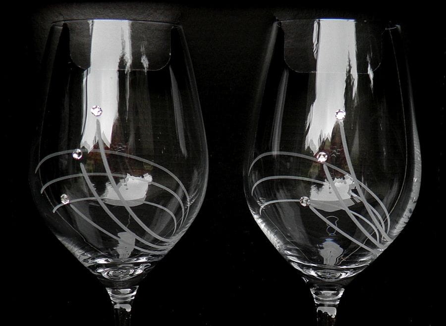 Kieliszki wykonane ze szkła kryształowego zdobione kryształkami SWAROVSKIEGO.