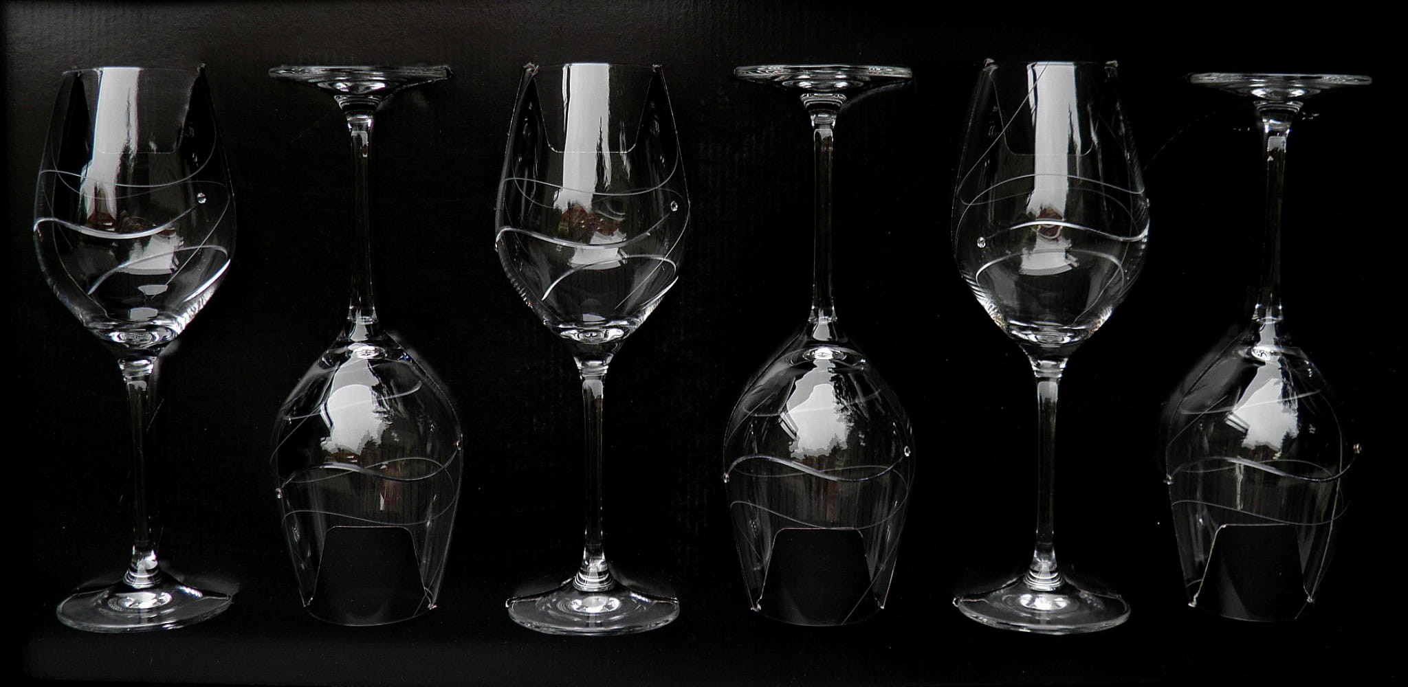 Zestaw sześciu kieliszków do wina zdobione kryształkami SWAROVSKIEGO