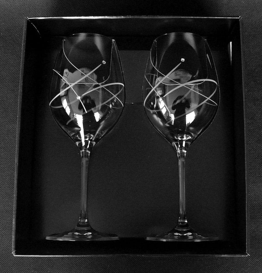 Kieliszki wykonane ze szkła kryształowego zdobione kryształkami SWAROVSKIEGO.