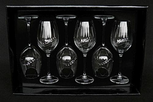 Zestaw sześciu kieliszków do wina zdobione kryształkami SWAROVSKIEGO