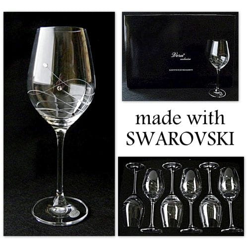 Zestaw sześciu kieliszków do wina zdobione kryształkami SWAROVSKIEGO