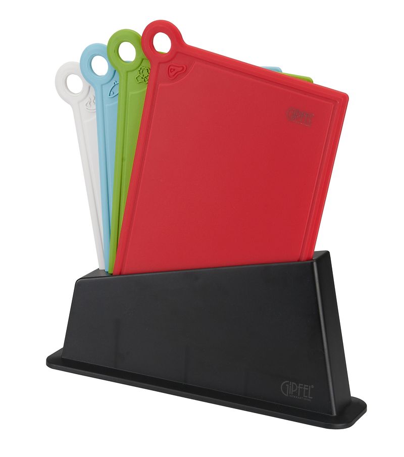 - 4 deski do krojenia w kolorach zielonym, białym, czerwonym oraz niebieskim z oznaczeniem ich przeznaczenia