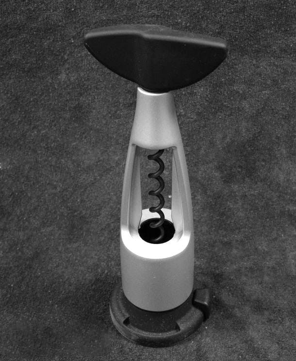 W komplecie: korkociąg i podstawa z obcinaczem folii