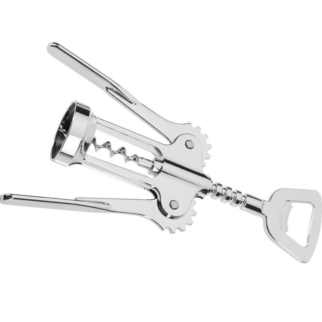 Ten wysokiej jakości korkociąg jest „Made in Germany” i ma „oryginalny ostry gwint Monopol”. Oznacza to, że może błyskawicznie usunąć korki naturalne i plastikowe, nie uszkadzając ich. Idealne dopasowanie pozwala idealnie umieścić korkociąg na szyjce butelki, a elegancko zakrzywione ramiona dźwigni można z łatwością nacisnąć, aby całkowicie odkorkować ulubione wino. Prawdziwa uczta dla oczu i podniebienia! Wskazówka: Dzięki zintegrowanemu otwieraczowi do butelek można szybko i łatwo otworzyć nawet butelki z kapslami.