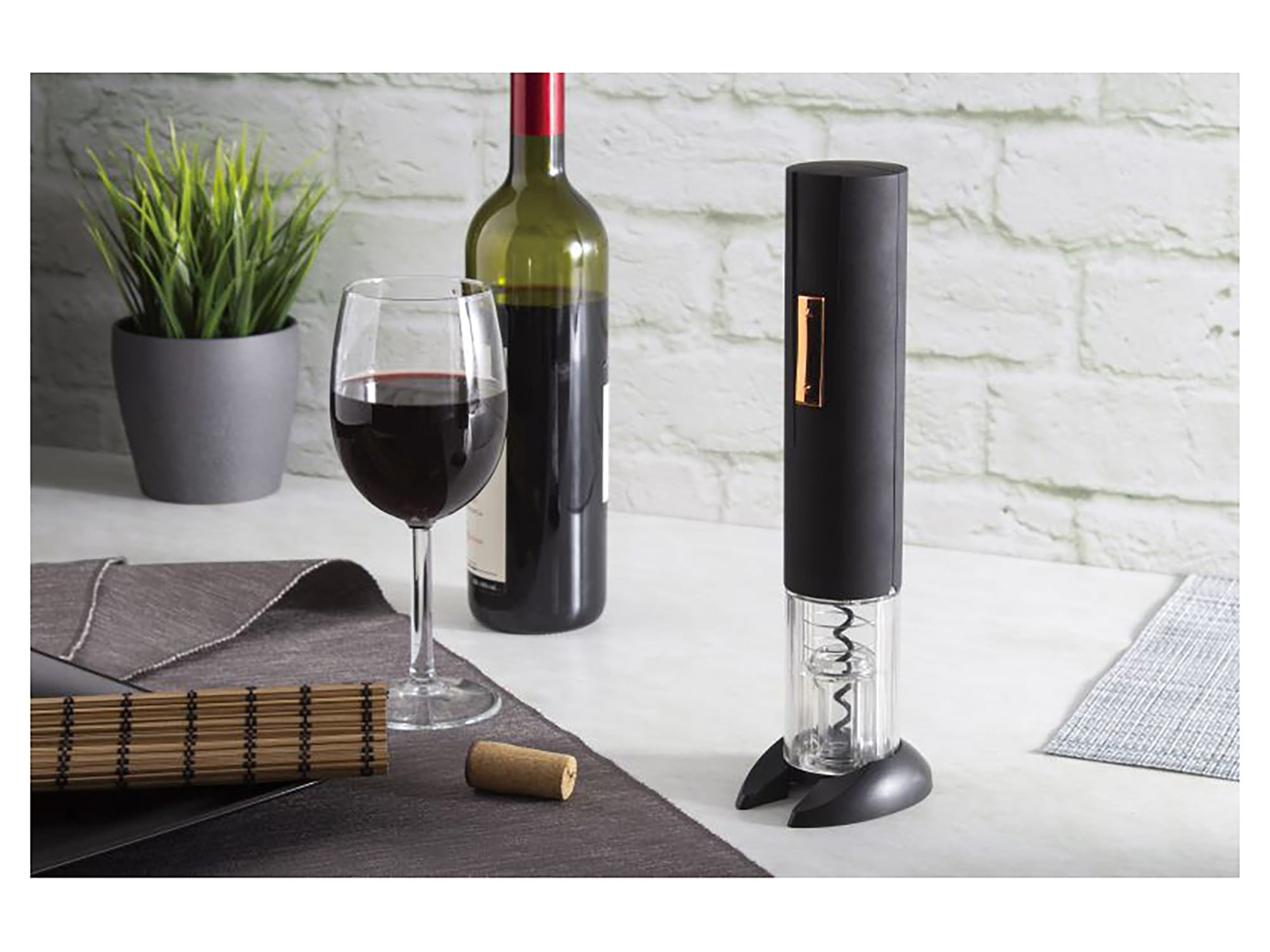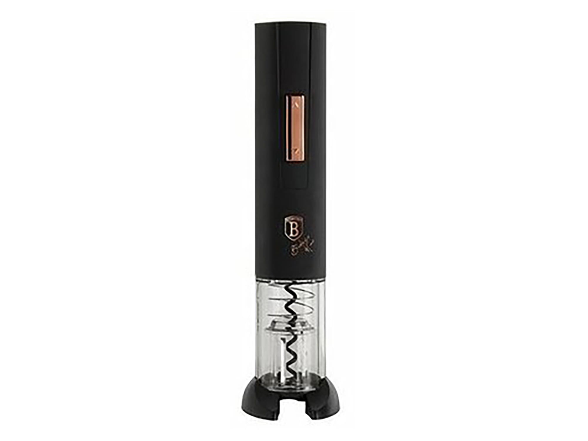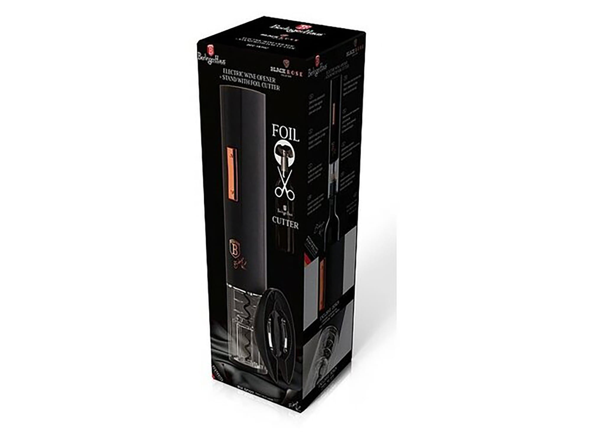 Korkociąg elektryczny do wina firmy BERLINGER HAUS z linii Black Rose którym bez problemu otworzysz każdą zakorkowaną butelkę. Zasilanie bateryjne 4 x AA (baterie nie dołączone). Do zestawu dołączony jest również obcinacz do folii będący jednocześnie podstawką.