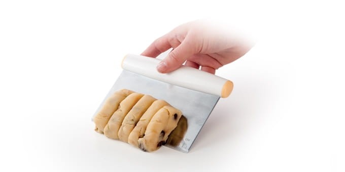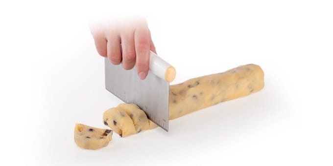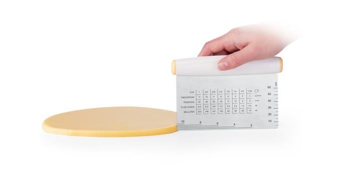Doskonała do łatwego i szybkiego krojenia ciasta. Masywne ostrze ze stali nierdzewnej dokładnie odmierzy długość, szerokość i grubość ciasta. Z tabelą do przeliczania objętości kubków, łyżek i łyżeczek na mililitry i uncje. Krajarka została wykonana z wysokiej jakości stali nierdzewnej oraz tworzywa sztucznego. Można myć w zmywarce.