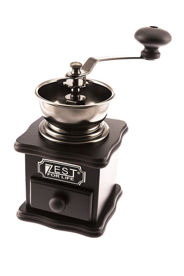 Drewniany młynek do kawy firmy Zest For Life z szufladką na zmieloną kawę. Młynki firmy Zest For Life charakteryzuje oryginalny styl retro. Koło zamachowe lub korbka uruchamiają mechanizm, który mieli kawę. Ta zmielona bezpośrednio przed przygotowaniem posiada świeży, intensywny aromat, a po zaparzeniu charakteryzuje się pełnym smakiem. Jakość młynków docenią prawdziwi miłośnicy kawy!