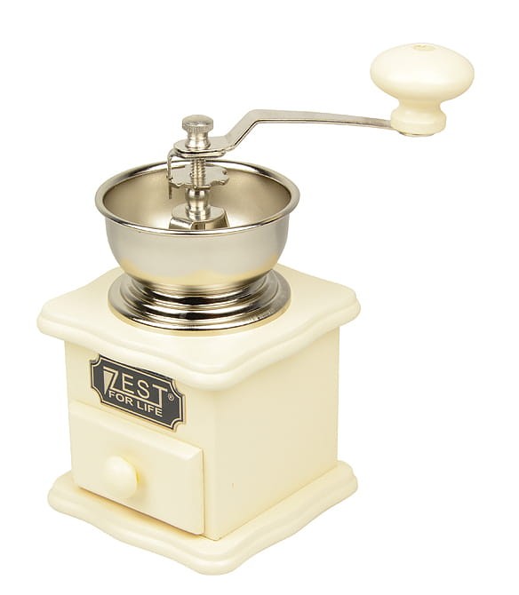 Drewniany młynek do kawy firmy Zest For Life z szufladką na zmieloną kawę. Młynki firmy Zest For Life charakteryzuje oryginalny styl retro. Koło zamachowe lub korbka uruchamiają mechanizm, który mieli kawę. Ta zmielona bezpośrednio przed przygotowaniem posiada świeży, intensywny aromat, a po zaparzeniu charakteryzuje się pełnym smakiem. Jakość młynków docenią prawdziwi miłośnicy kawy!