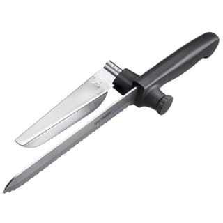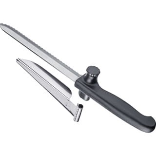 - Wielofunkcyjny nóż z ostrym ząbkowanym ostrzem i przekładką do równomiernego krojenia plastrów