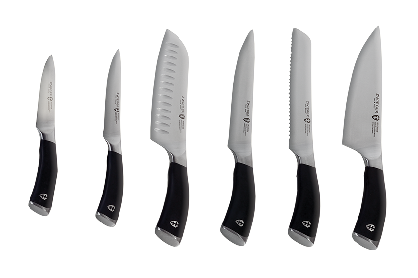 Nowoczesna linia noży z ostrzem wykonanym z niemieckiej stali chromo-molibdenowo-wanadowej (X50CrMoV15)charakteryzująca się niezwykłą twardością i wytrzymałością. Ostrze full-tang hartowane w kilkustopniowym procesie temperaturowym regulowanym komputerowo, o wyjątkowej twardości 56 HRC, która gwarantuje długą żywotność ostrza, precyzję krojenia oraz łatwość ostrzenia. Każde ostrze jest ręcznie ostrzone przez wykwalifikowanego rzemieślnika, aby uzyskać doskonały kąt ostrzenia. Rękojeść wykonana z najwyższej klasy tworzywa POM zapewnia ergonomię i wygodę użytkowania.