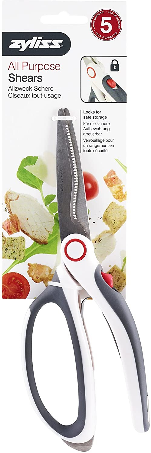 Nożyce do drobiu firmy Zyliss wykonane zostały z wysokiej jakości japońskiej stali nierdzewnej - są ostre i trwałe. Posiadają ząbkowane ostrze i specjalny system sprężynowy, ułatwiający cięcie przygotowywanego drobiu. Wygodne w użyciu, rozkładane do mycia, ze specjalną blokadą do przechowywania. Nożyce są stworzone do "ciężkiej pracy", nie wymagają zatem nadmiernej siły podczas ściągania skóry, cięcia lub ćwiartowania drobiu. Antypoślizgowe uchwyty z tworzywa gwarantują bezpieczny trzymanie nożyc podczas ich użytkowania.