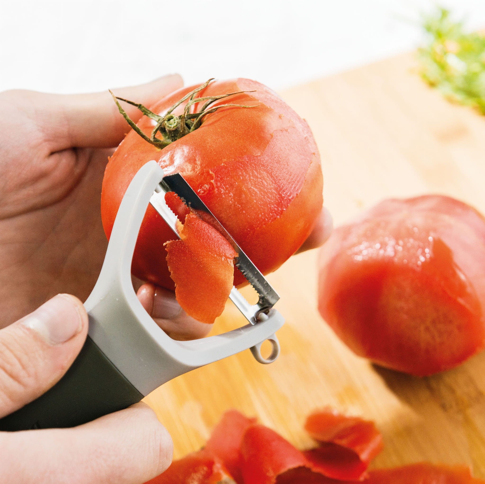 Nie ma takiego owocu czy warzywa, z którym nie poradziłbyś sobie z pomocą tego zestawu obieraczek i tarek. Każdy przedmiot posiada ergonomiczną, miękką w dotyku rączkę, która pasuje do dłoni jak ulał i zapewnia wygodny chwyt. Ponadto, obieraczki są wyposażone w ostre ostrze ze stali nierdzewnej, które jest idealne do szybkiego i łatwego obierania oraz wbudowany przyrząd do usuwania plamek z ziemniaków. Dodaj do tego wielofunkcyjną tarkę, która dzięki swojej teksturowanej powierzchni z łatwością radzi sobie z imbirem, czosnkiem, owocami cytrusowymi itp. Tak właśnie otrzymasz niezbędny zestaw narzędzi kuchennych.