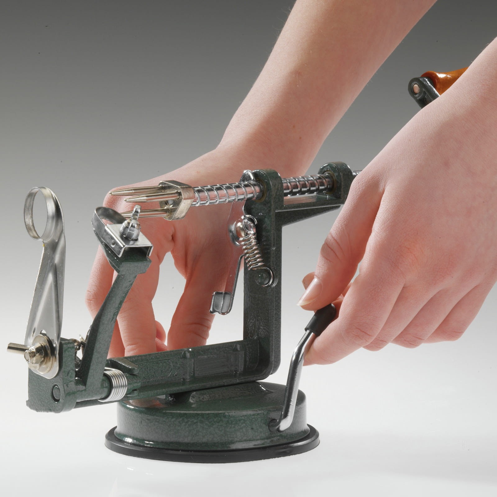 Obieranie jabłek może być przyjemnością. To urządzenie obiera, kroi jabłka, usuwa równocześnie gniazda nasienne.