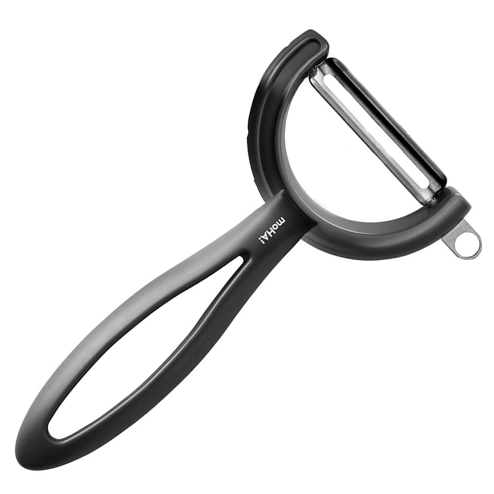 Ostrze zostało wykonane ze stali nierdzewnej, zaś rączka i obudowa z tworzyw sztucznych wysokiej jakości. Pionowe ostrze ma specjalne oczko do usuwania niechcianych miejsc z ziemniaków. Obrotowe ostrze pozwala obierać warzywa w obu kierunkach, więc nadaje się również dla osób leworęcznych.