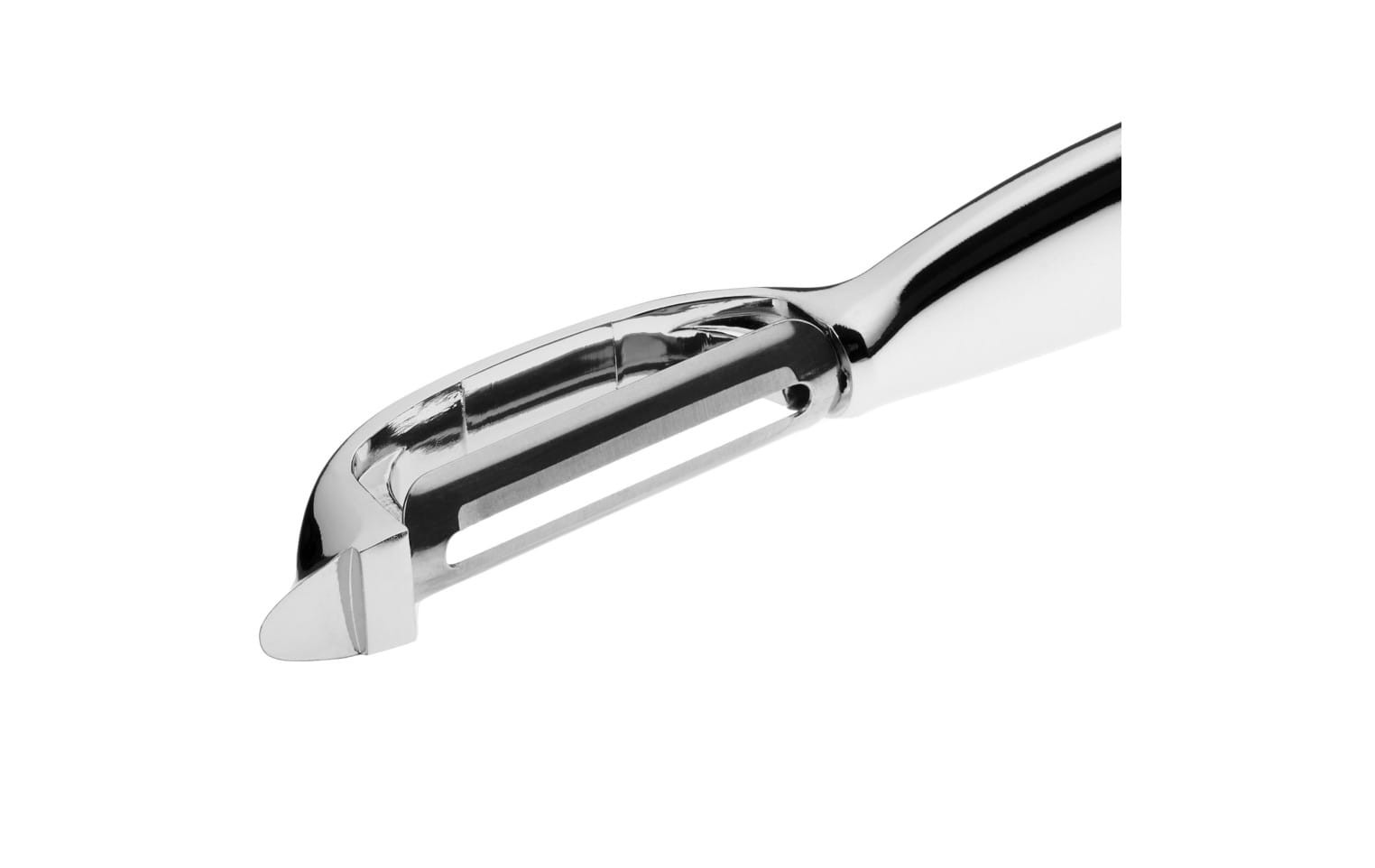 Obieraczka Solid – minimalizm i funkcjonalność. Obieraczka z linii Solid to wygodne, uniwersalne narzędzie kuchenne, przeznaczone dla osób praworęcznych oraz leworęcznych. Ostrze zostało wykonane z wysokiej jakości stali nierdzewnej, co usprawnia proces obierania warzyw czy owoców. Obieraczka jest wytrzymała i poręczna, posiada również antypoślizgowy uchwyt (z silikonową nakładką), który bardzo dobrze leży w dłoni. Jej prosta forma sprawia, że idealnie pasuje do nowoczesnego wnętrza.