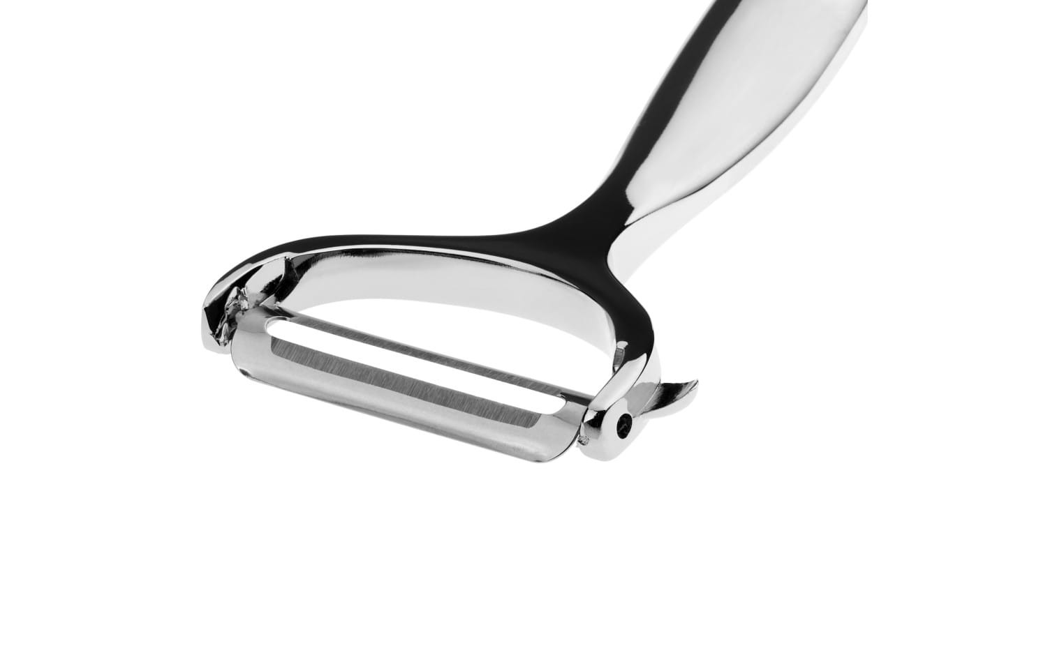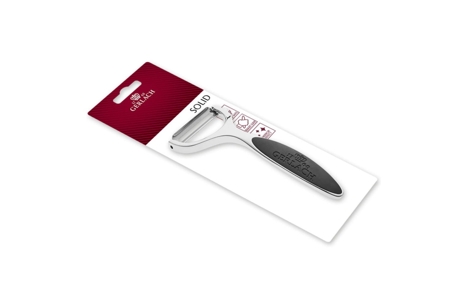 Obieraczka z linii Solid to wygodne, uniwersalne narzędzie kuchenne, przeznaczone dla osób praworęcznych oraz leworęcznych. Ostrze zostało wykonane z wysokiej jakości stali nierdzewnej, co usprawnia proces obierania warzyw czy owoców. Obieraczka jest wytrzymała i poręczna, posiada również antypoślizgowy uchwyt (z silikonową nakładką), który bardzo dobrze leży w dłoni. Jej prosta forma sprawia, że idealnie pasuje do nowoczesnego wnętrza.