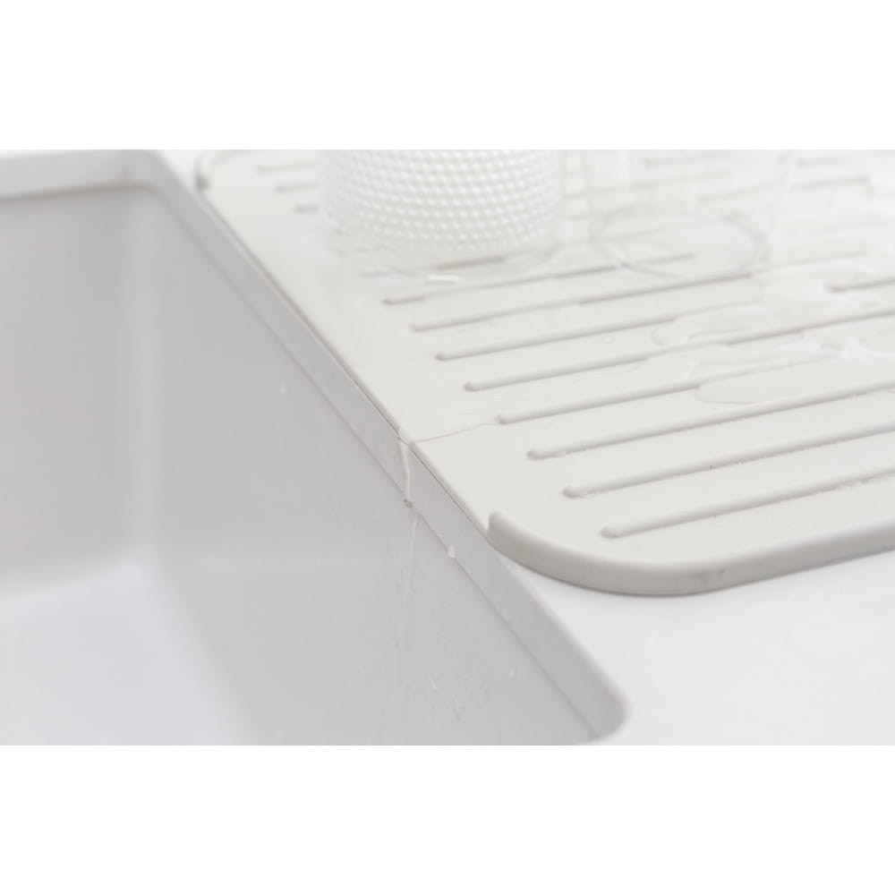 Gdy potrzebujemy dodatkowej przestrzeni na umyte naczynia rozkładamy matę na krawędzi blatu i zlewozmywaka.