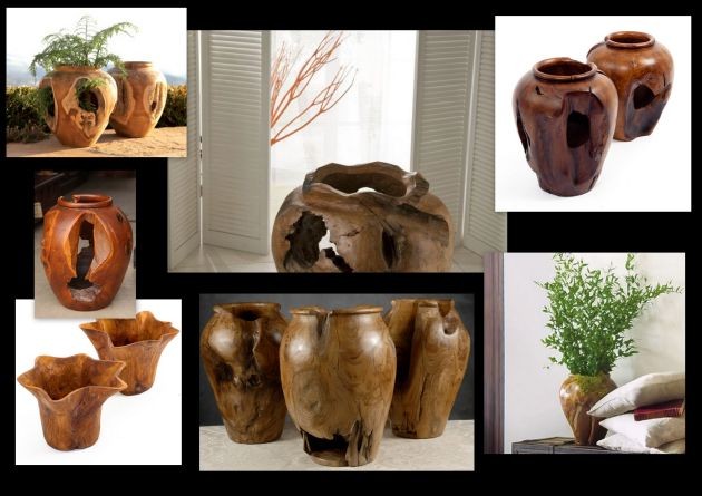 Orientalny wazon ozdobny z drzewa tekowego PADANG A3