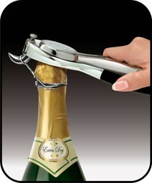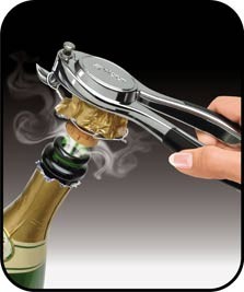 Intuicyjny i łatwy w użyciu, Champagne Opener rozbija klatkę z drutu, usuwa folię i uwalnia korek w jednym szybkim ruchem.