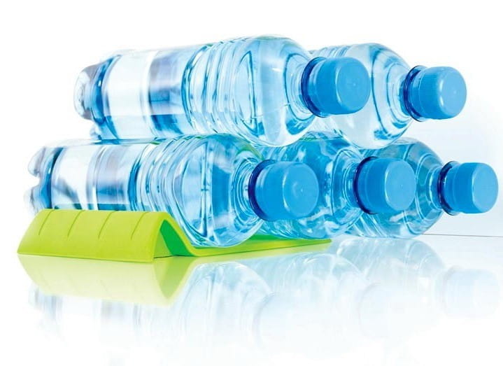 Należy umieścić podstawkę w odpowiedniej odległości od ściany lodówki, następnie układając butelki z wodą lub inne napoje np. w formie piramidy.
