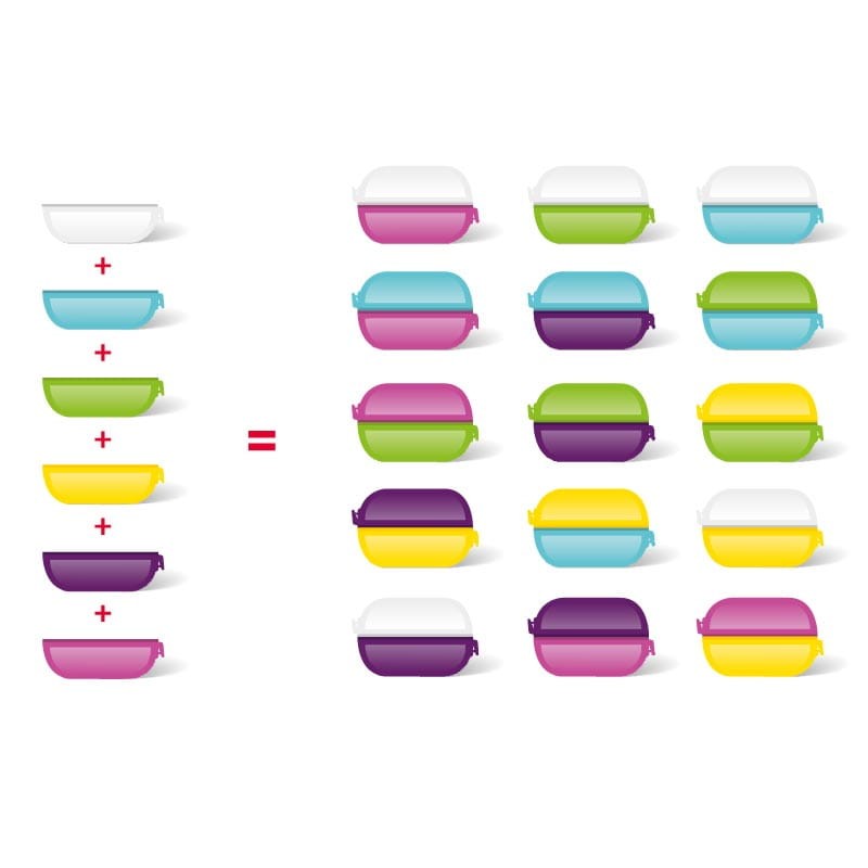 15 możliwych kombinacji mieszania kolorów.