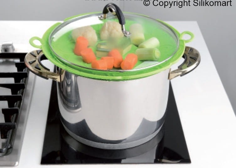 Silikonowa pokrywa z otworami, zapobiega pryskaniu i kipieniu wody oraz utrzymuje temperaturę potrawy. Może służyć również jako wkład do gotowania lub podgrzewania na parze.