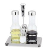 Zestaw na pięknym stojaku wykonanym ze stali nierdzewnej 18/10 o wysokim połysku.