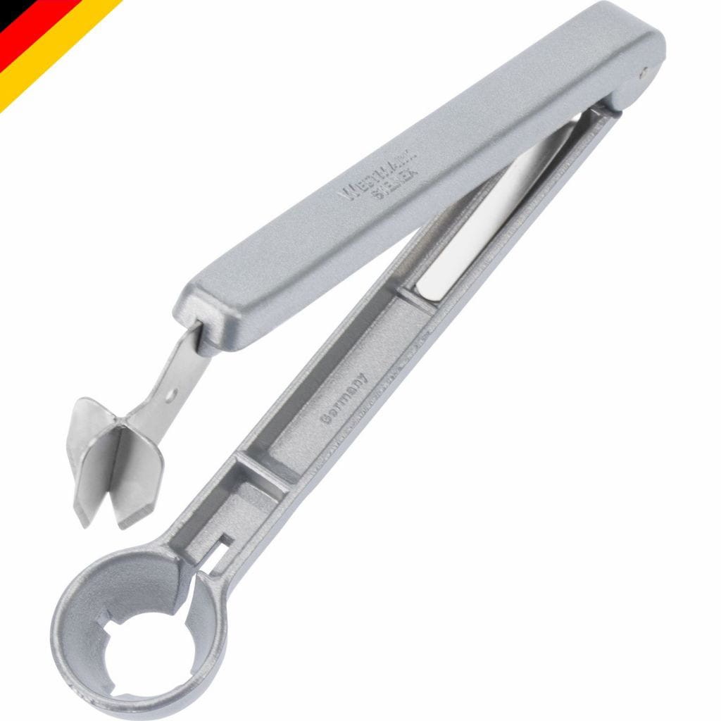 Drylownica do śliwek sprawia, że drylowanie śliwek jest szybkie i skuteczne. Nadaje się do drylowania świeżych, konserwowanych lub mrożonych śliwek lub śliwek o średnicy do 3 cm. Wystarczy włożyć śliwkę i wycisnąć, a śliwki są gotowe do użycia! Szczególnie praktyczne: ostry nóż krzyżowy usuwa pestkę i tnie owoce prosto do góry, dzięki czemu nadaje się do ciast i puszek.
