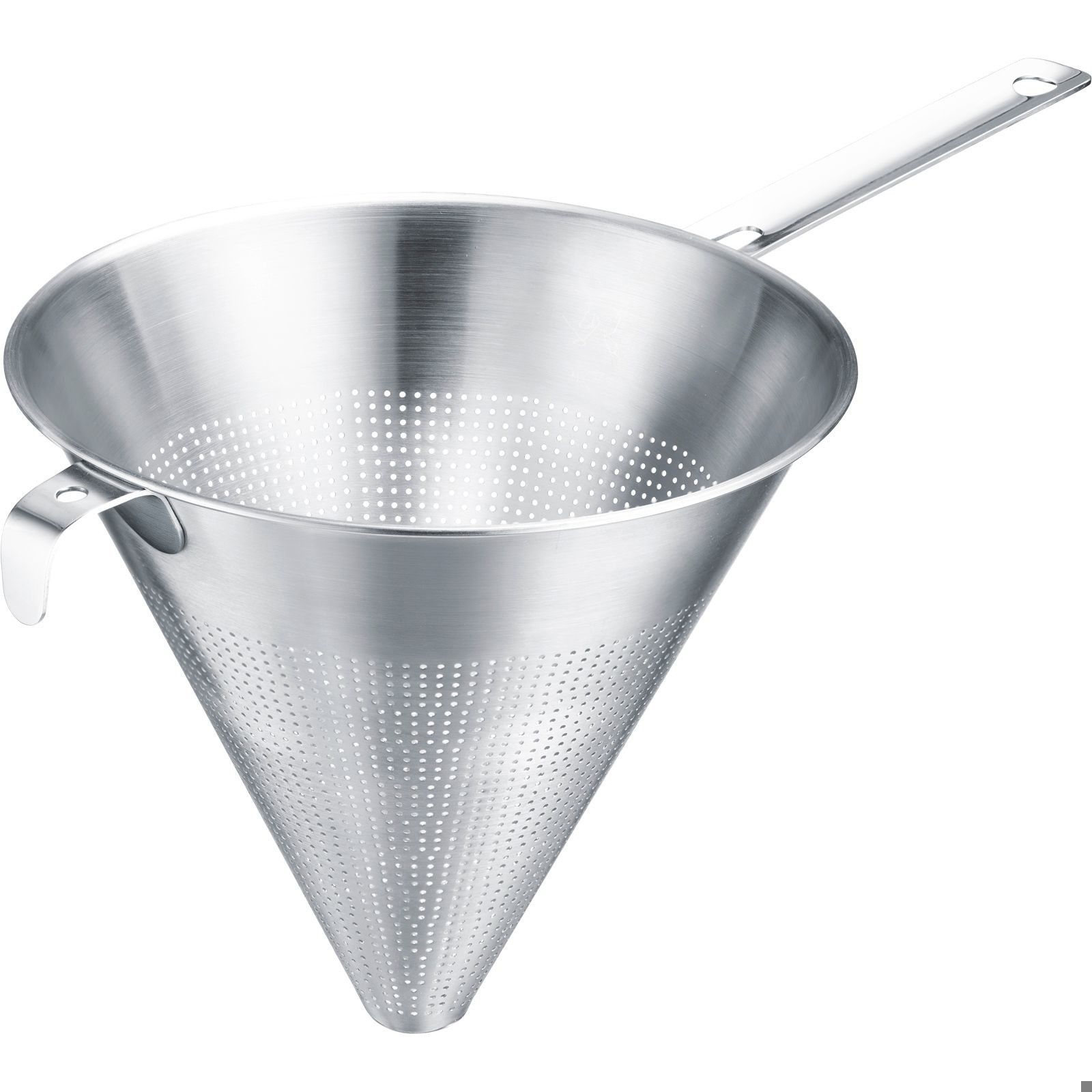 Wysokiej jakości sito do przecedzania delikatnych sosów i wywarów! To wszechstronne sito stożkowe firmy Westmark idealnie nadaje się do przecedzania wywarów, sosów, kremów i zup. Drobne perforacje dookoła umożliwiają precyzyjne przecedzenie, a solidny uchwyt i uchwyt pomocniczy zapewniają bezpieczne użytkowanie. Wykonane z wysokiej jakości stali nierdzewnej, to sito kuchenne o drobnych oczkach jest wyjątkowo trwałe i nadaje się do mycia w zmywarce – idealne do codziennego użytku w profesjonalnych kuchniach.