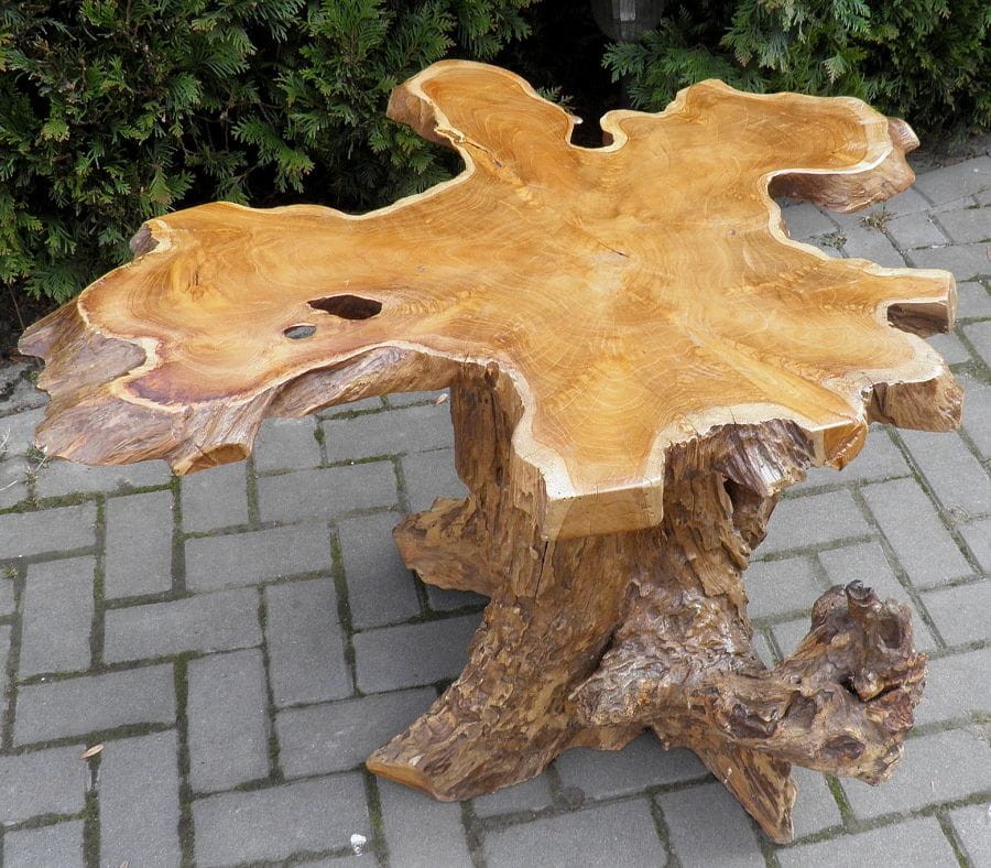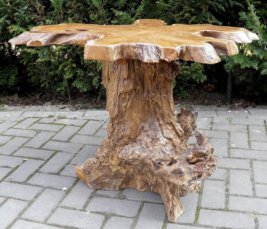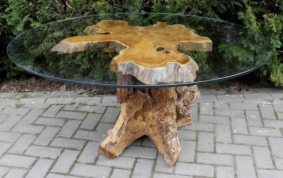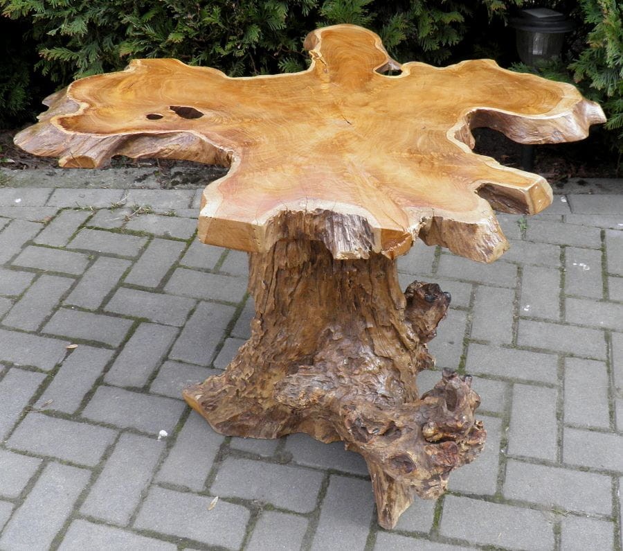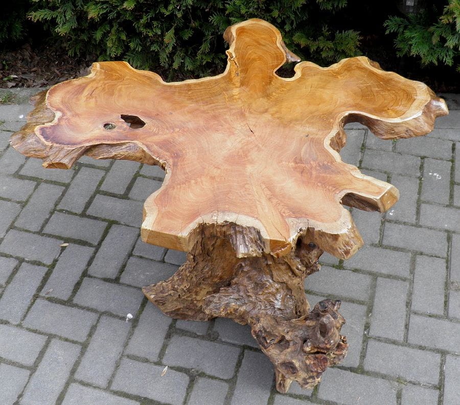PIĘKNY STÓŁ WYKONANY Z KORZENIA WYSOKOGATUNKOWEGO DRZEWA TEKOWEGO.