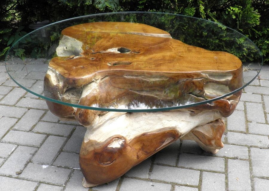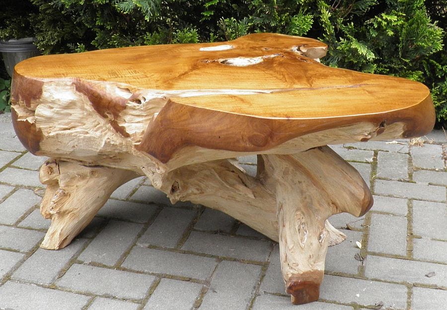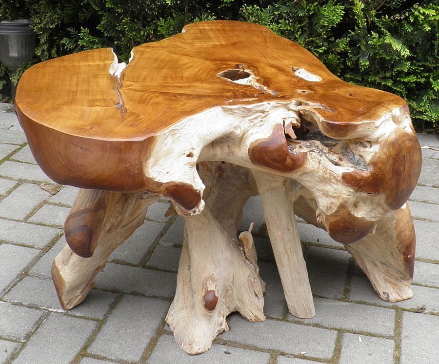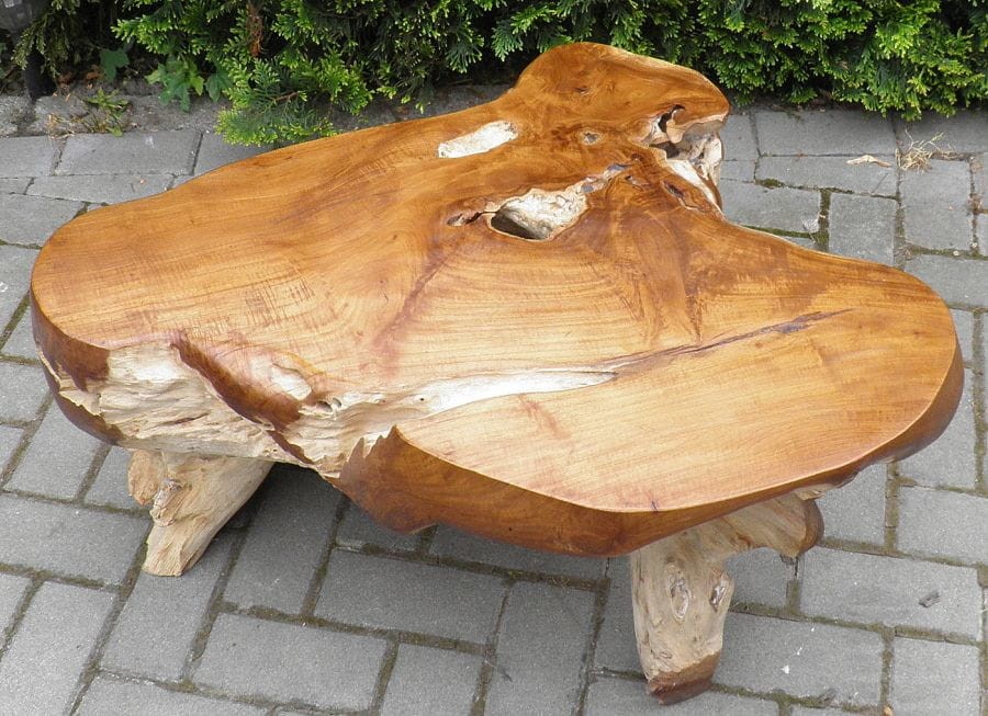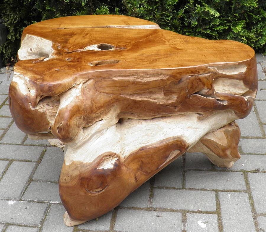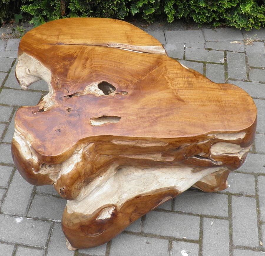 PIĘKNY STÓŁ WYKONANY Z KORZENIA WYSOKOGATUNKOWEGO DRZEWA TEKOWEGO.
