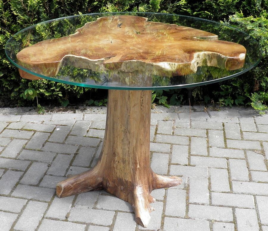 PIĘKNY STÓŁ WYKONANY Z KORZENIA WYSOKOGATUNKOWEGO DRZEWA TEKOWEGO.