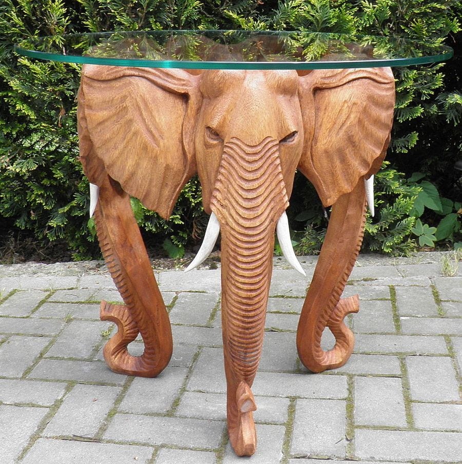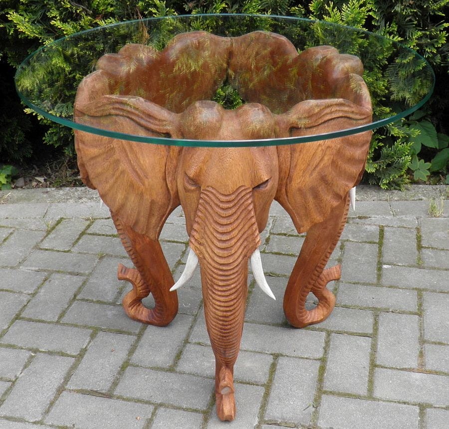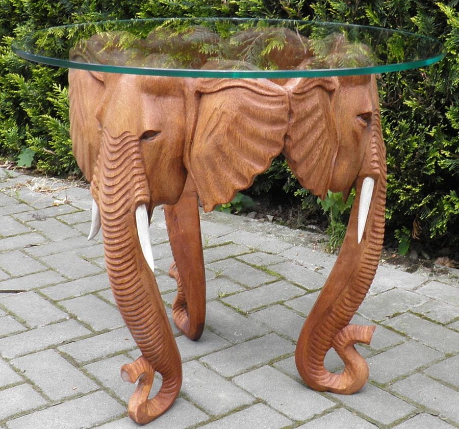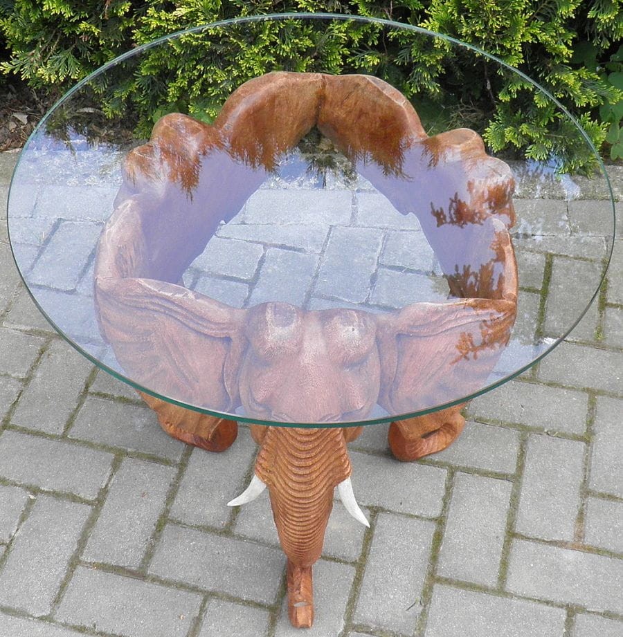 Stół kawowy z drzewa tekowego TEAK szklany blat SŁONIE