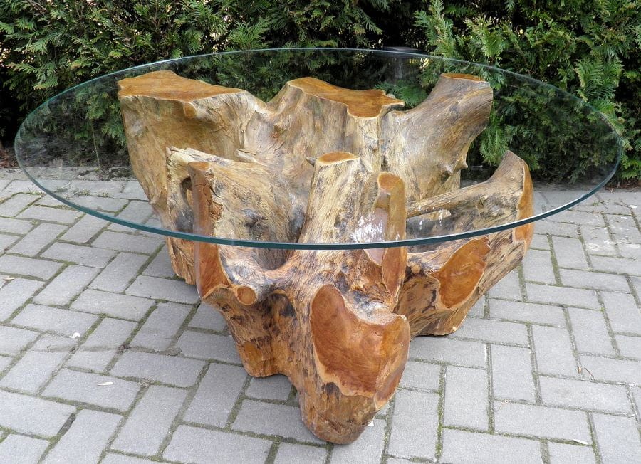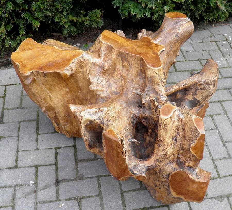 PIĘKNY STÓŁ WYKONANY Z KORZENIA WYSOKOGATUNKOWEGO DRZEWA TEKOWEGO.