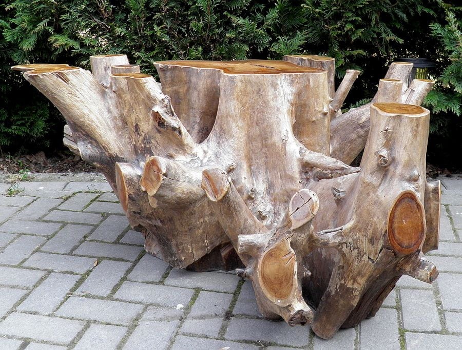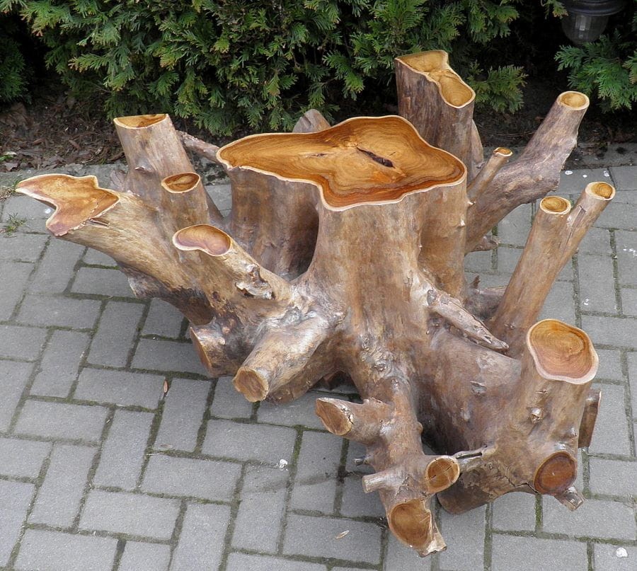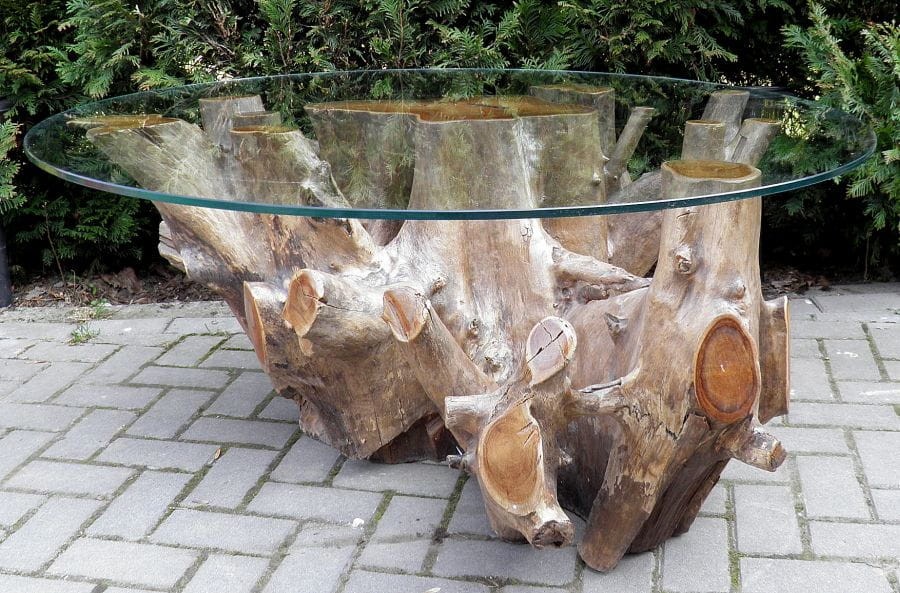 PIĘKNY STÓŁ WYKONANY Z KORZENIA WYSOKOGATUNKOWEGO DRZEWA TEKOWEGO.
