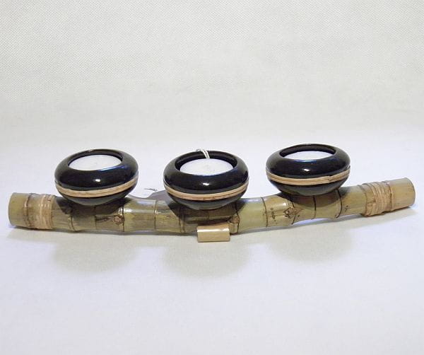 Świecznik wykonany ręcznie z bambusa, przez indonezyjskiego rzemieślnika.