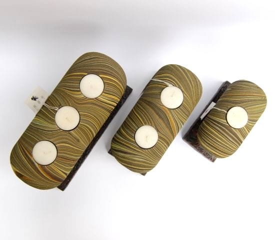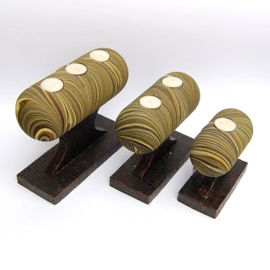 Świeczniki zostały wykonane ręcznie przez indonezyjskich rzemieślników, z egzotycznego drewna dekorowane piaskiem