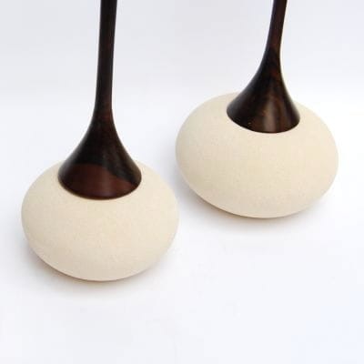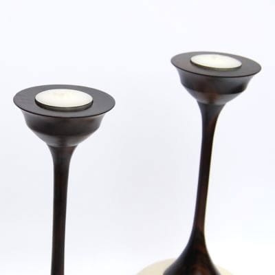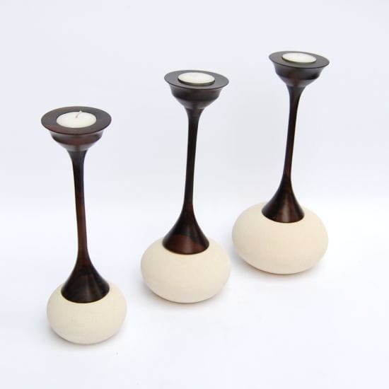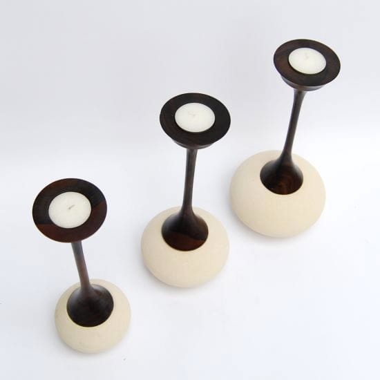 Świeczniki wykonane ręcznie przez indonezyjskiego rzemieślnika, połączenie kamienia z drzewem egzotycznym.