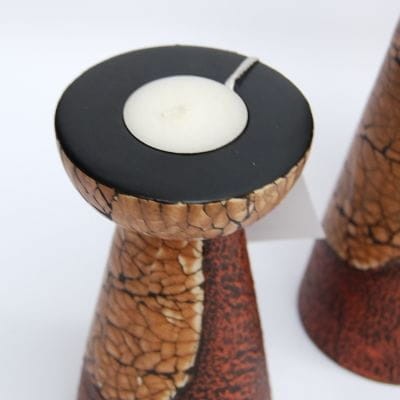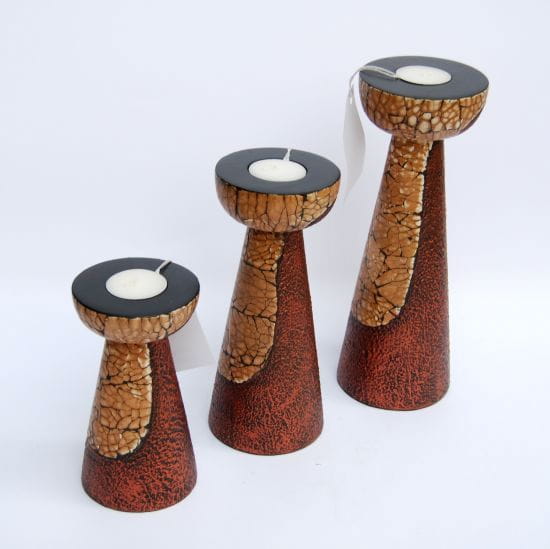 Świeczniki zostały wykonane ręcznie przez indonezyjskich rzemieślników, z egzotycznego drewna zdobione skorupkami jajek